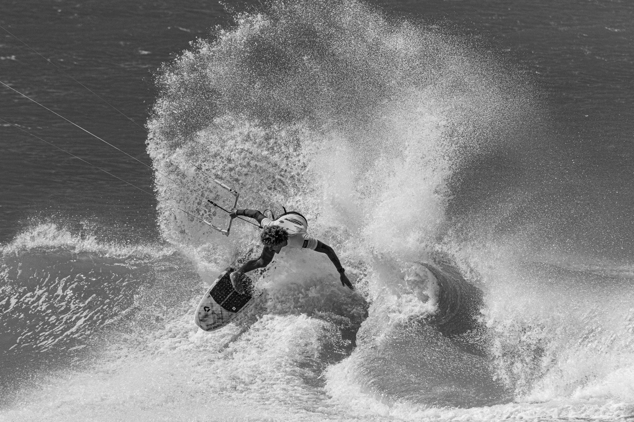 La GKA est le circuit mondial de kitesurf de référence, qui fait étape dans une dizaine de pays chaque année. À Dakhla, j'ai eu l'honneur d'être leur photographe officiel lors de l'étape locale — 6 jours de compétition réunissant les meilleurs riders du monde dans les vagues. Cette édition était doublement exceptionnelle : en parallèle se tenait la WGA, Coupe du Monde de wingfoil. J'avais pour mission de couvrir les deux simultanément.